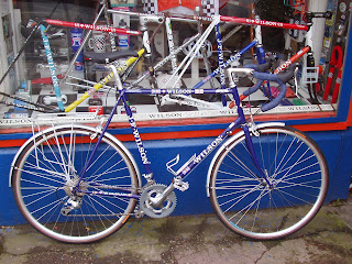But thankfully there are always through backs to bygone eras...I'm one..but my pal Mark Hudson for example had a frame unpainted like Syd's but we went one better and applied the Wilson transfers to the bare tubes and then powder coated over it all in clear powder coat...so people could see the brazing workmanship and the frame's well protected too..